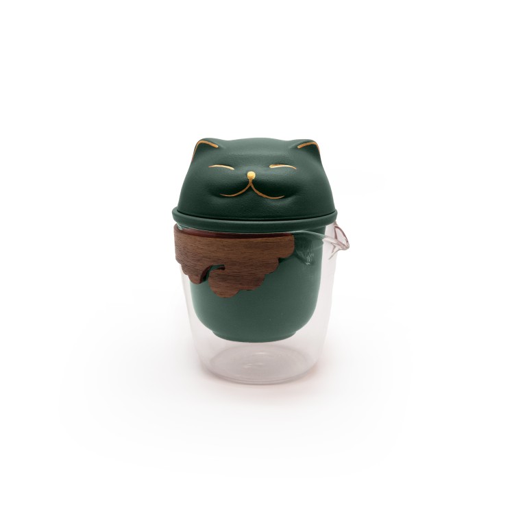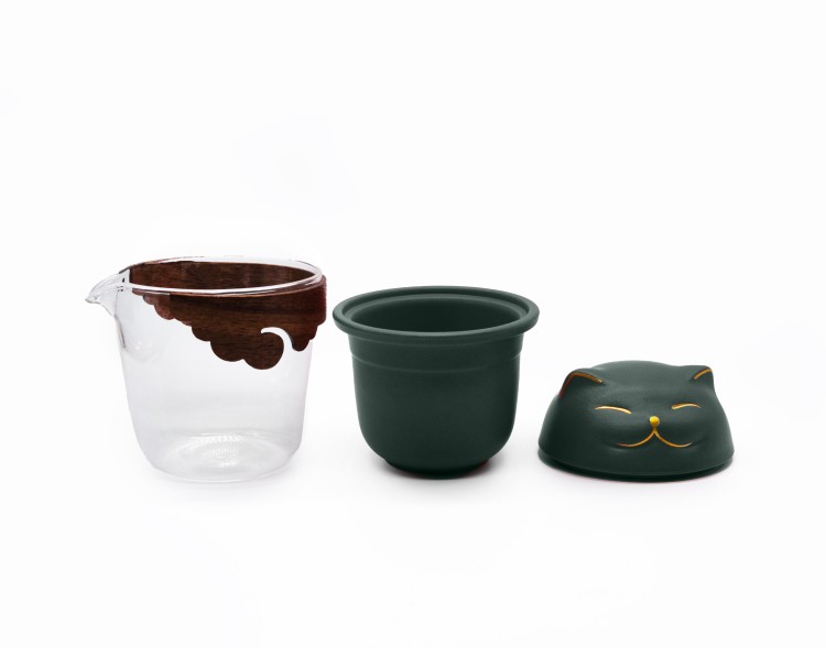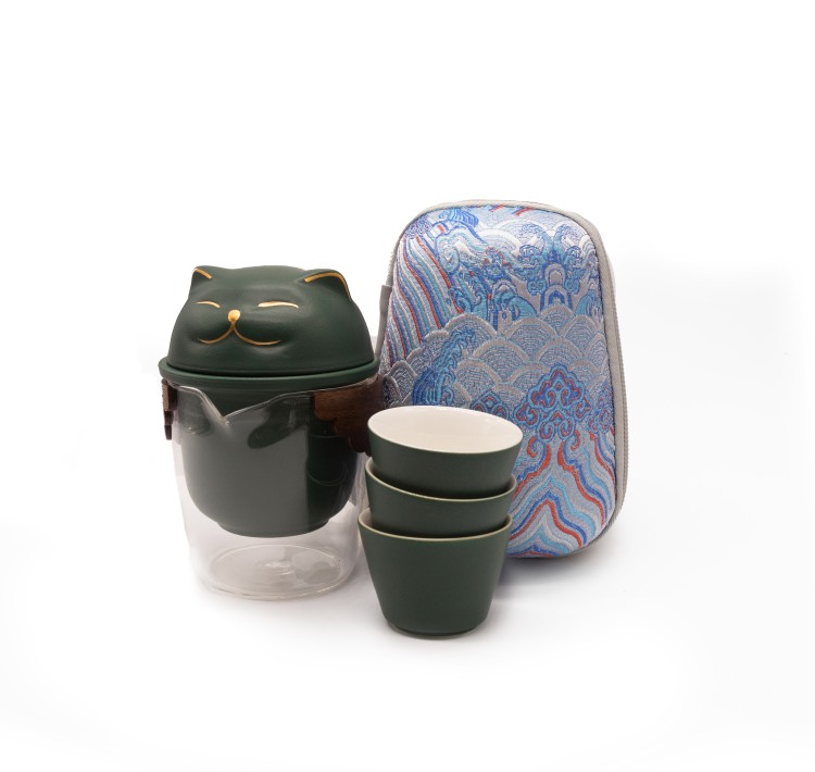 Походный чайный набор Кот, цвет зеленый, на 3 персоны